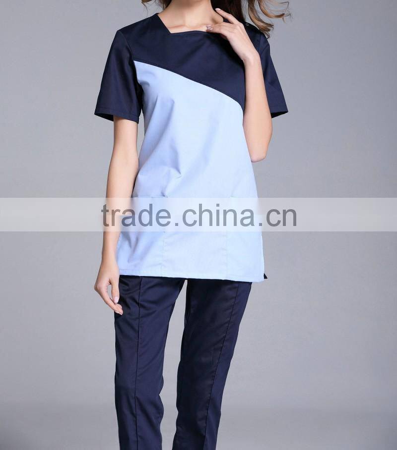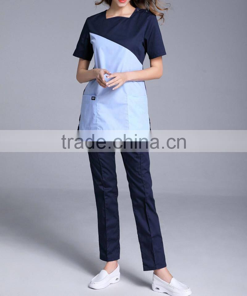 Fashion U Shape Neck Surgical Medical Scrub Sets Short Sleeve Nurse Uniform Doctors Overalls Hospital Workwear Cloth