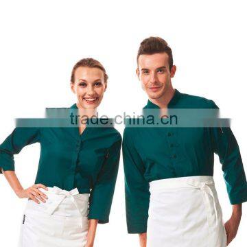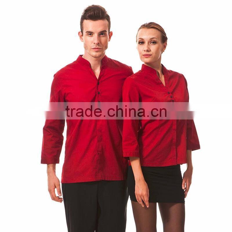 OEM&ODM Female Waitress Blouse Unisex Waiter Shirt Solid Color Restaurant Hotel Uniforms