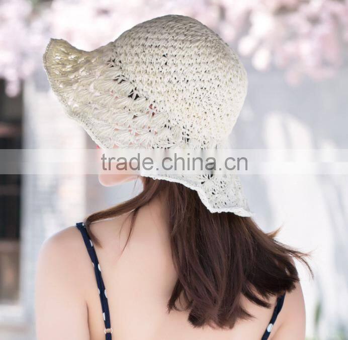 Zm40595b Summer Handmade Bearded Needle Folding Women Straw Sun Visor Hat