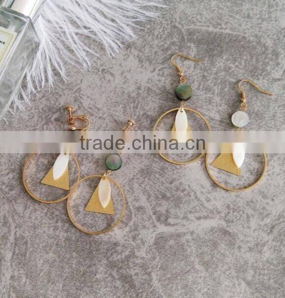 Zm35142a Summer Simple Women Clip on Statement Earrings New Design Shell Hoop Earrings