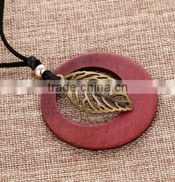 Zm35076a Vintage Girls Accessories Cheap Fashion Wooden Pendant Necklace