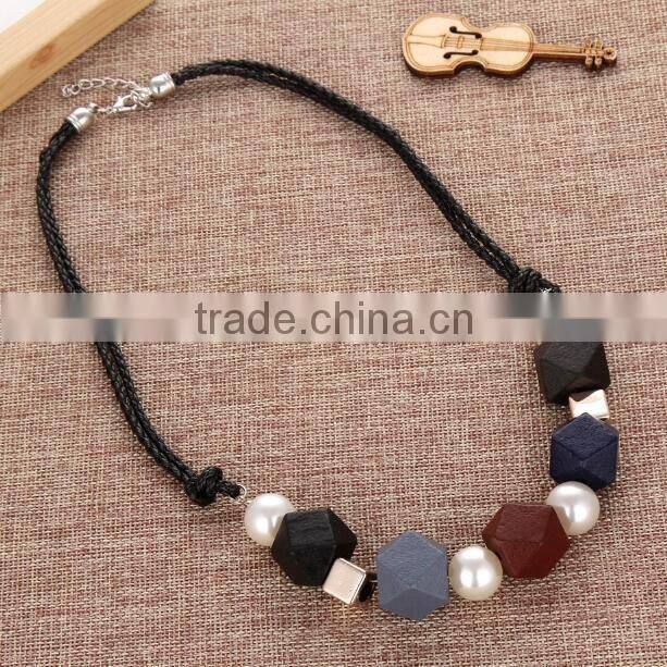 Zm35073a New Fashion Women Accessories Sweater Necklace Cheap Wooden Necklace