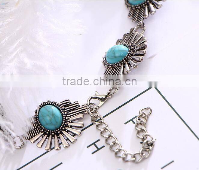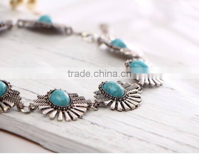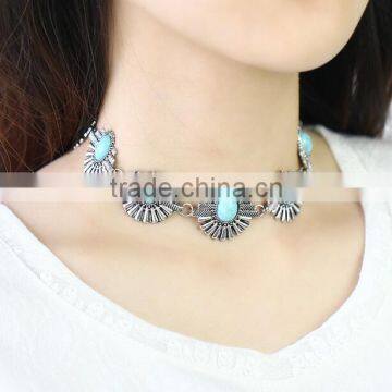 Zm34113a Vintage Women Jewelry Accessories Sliver Plated Turquoise Choker Necklace