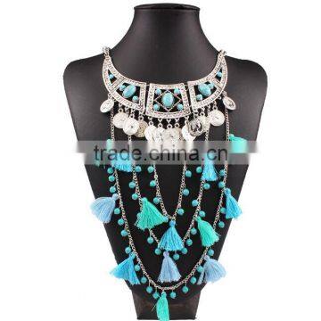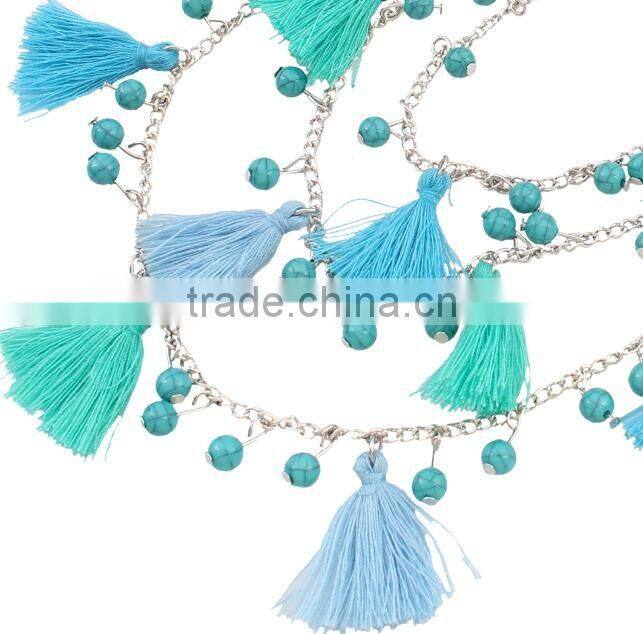 Zm34112a Fashion Women Resin Layered Long Tassel Necklace Jewelry