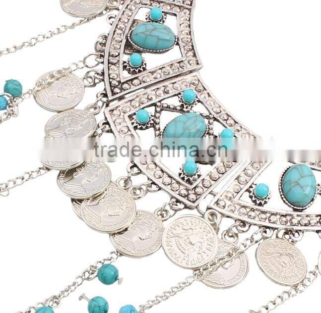 Tribal Egyptian Rhinestone Red and Blue Belly Dance Necklace Jewelry Accessory P-9004#US$ 2 - 6MOQ: 10 Pieces