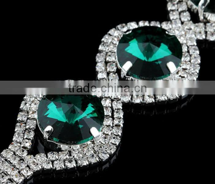 Zm53244a Vintage and Classical Green Color Diamond Drop Style Silver Earrings