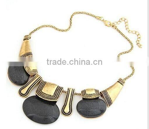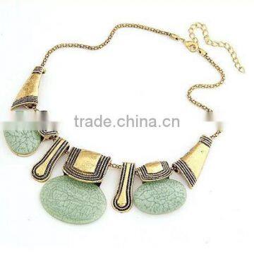 Zm33435a Fashion Bohemian Women Turquoise Gold Plated Statement Necklace Jewelry