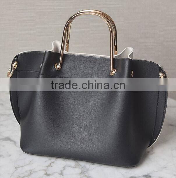 Zm35576a Korean Women Metal Handle Tote Bags Fashion Handbag Sets.