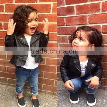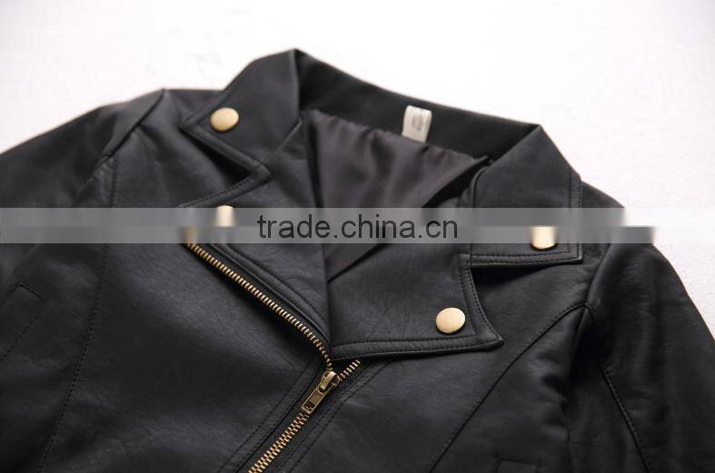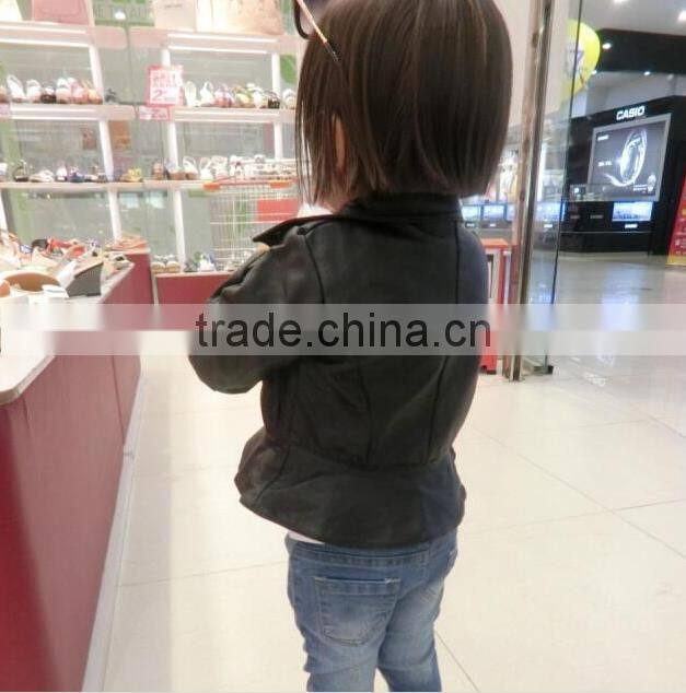 Zm40653b Children Girls Motorcycle pu Leather Jacket, Casual Kids Jacket Coat With Zipper