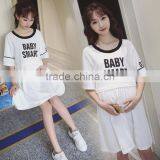 Zm10518a 2016 Cotton Maternity Clothes White Maternity Dress Short Sleeve Nursing Dress