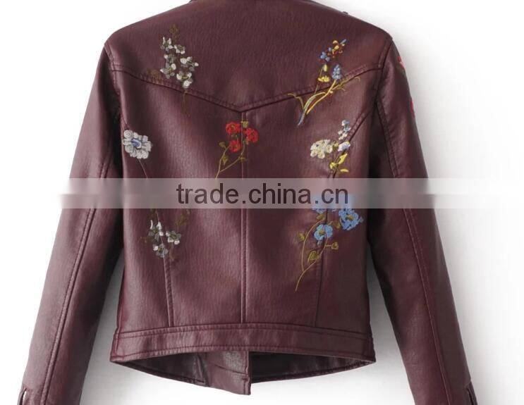 Zm50327b Autumn and Winter New Style Women Clothes Embroidery pu Coats Zipper Jacket Lady Coat