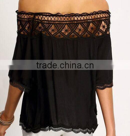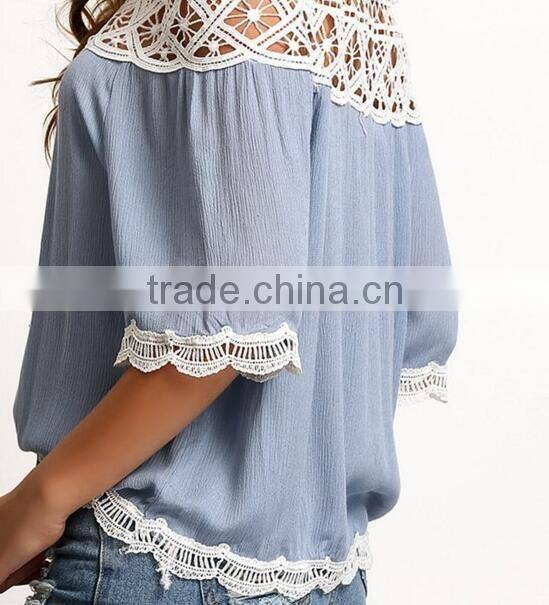Zm50315b Europe Plus Size Women Clothing New Style Blouse Women Lace Chiffon Georgette