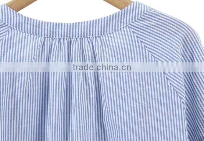 Zm50291b 2017 Summer New Style Women Clothes Embroidery Stripe Ladies Blouses