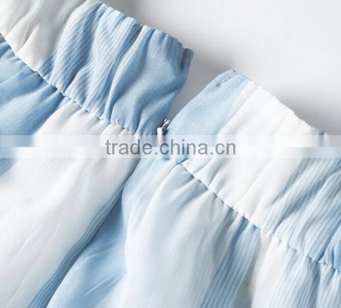 Zm50289b New Style Europe Lady Clothing off Shoulder Stripe Casual Women Two Piece Suit