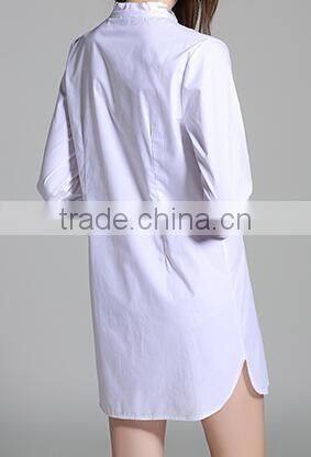 Zm50276b Europe Autumn Lady Clothing Fashion Lapel Pure Color Tops Blouse Women