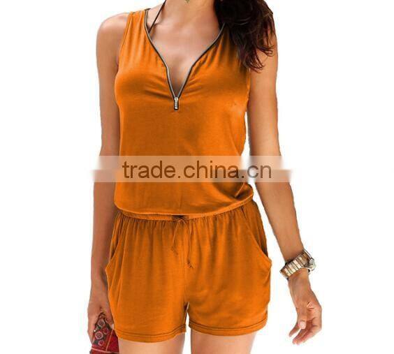 Zm50235b Europe Hot Sale Women Clothes Sleeveless v Neck Jumpsuits Pure Color Lady Pants