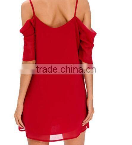 Zm50233b 2017 Spring and Summer Hot Sell Ladies Clothes Chiffon off Shoulder Short Sleeve Slip Dresses