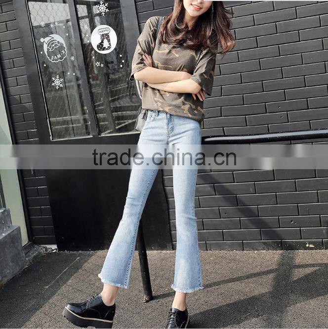 Zm40636b Women New Fashion Jeans Ninth Pants Ladies Summer Bell-bottoms Trousers