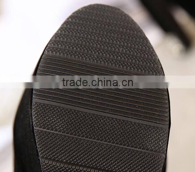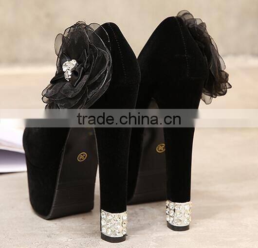 Zm50326b High Heel Lady Shoes Suede Black Flower Chunky Heels Women Shoe