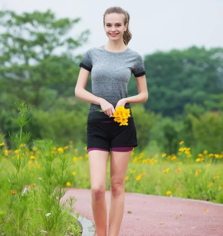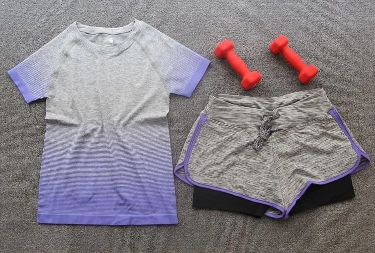 Zm10725a New Women Yoga Wear Running Workout Clothes Two-piece Outfit Shorts Fitness Yoga Wear