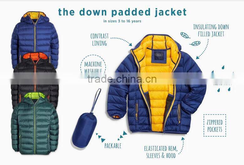 OEM Winter High Quality Multi Color Zipper Long Sleeve Kids Down PaddedJacket for Boys