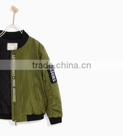 -Description:Fashion zipper plain bomber jacket ,latest design kids padded bomber jacket,quilted bomber jacket for girls