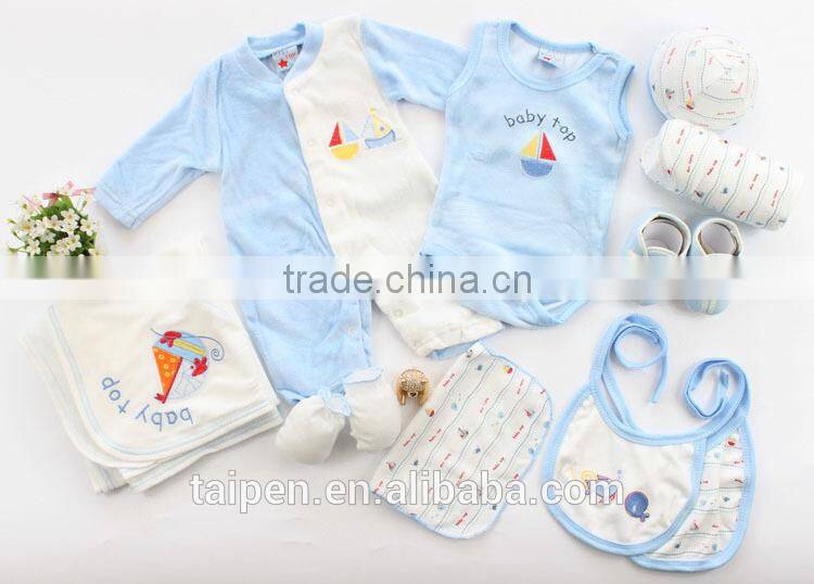 Home > Products > Baby Gift Set > 2017 Baby Gift Set 100% Cotton Blue Romper 8Pcs Summer New Born Clothing Set Baby Clothes With Good Quality TQ1-67