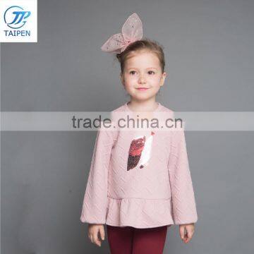 2017 Spring Fashion Sequins Pattern t Shirt With Pleated Hem Kids Party Wear