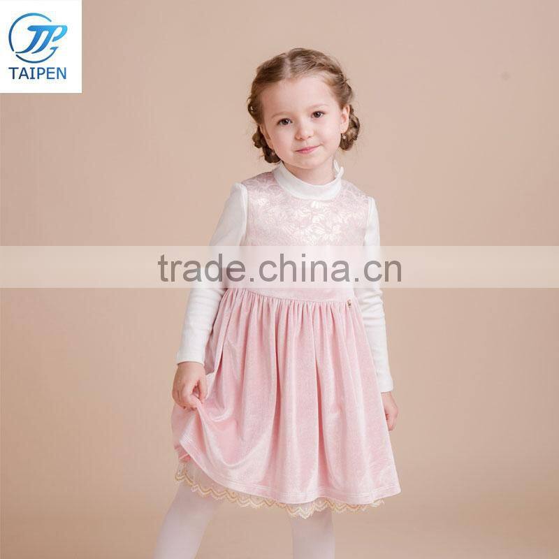 2017 Spring Girls Woolen A-line Dress Children's Clothing Lone Sleeve Lace One-pice Designs For Girl
