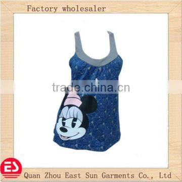 Feature | Breathable,quickly dry , soft handfeel while touched Front middle prints scoop-neck and slim style Neck encased with bindings Front chest side with shirring Centre back sewn main/size/wash label |