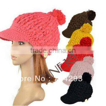 Women's Wool Winter Hat Thick Line Hat Ball Cute Hat Warm Flight Hat Peaked Cap 9085