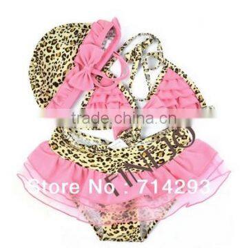 Summer Korean Girls Children Leopard Bikini Swimwear 3-Piece Sets Swimsuit.1.Low MOQ
