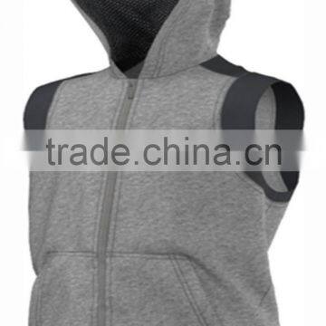 85% Ctn, 15% Mel, Fleece, One Side Brush, Children Boys Slv Less Hooded Jacket With Cangaru Pocket and Hooded Inside Mesh Lining