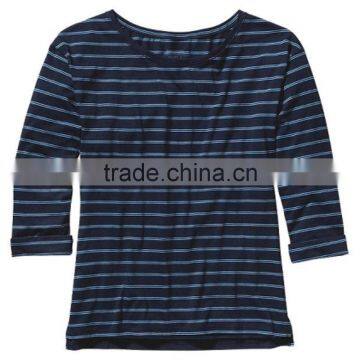 Ladies 3/4 Sleeve Stripped T-Shirt, 100% Ctn, S/J, 160 Gsm