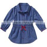 New 2016 Vogue Women's Long Sleeve Cotton Poplon Casual Waist Elastic Belt Shirt