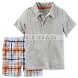 100% Ctn, Children Boys Set, PK Polo With Self Fabrics Collar and Short Pant With Stripe Woven Fabrics