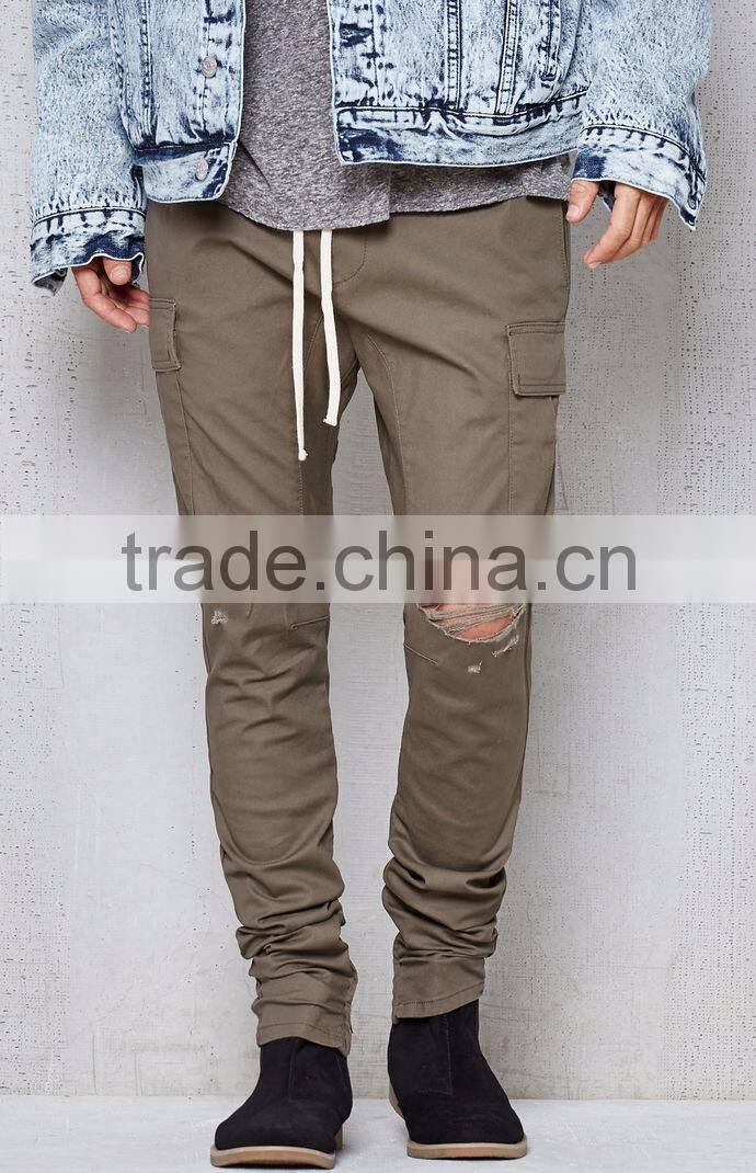 Drop Skinny Destroyed Athletic Cargo Joggers