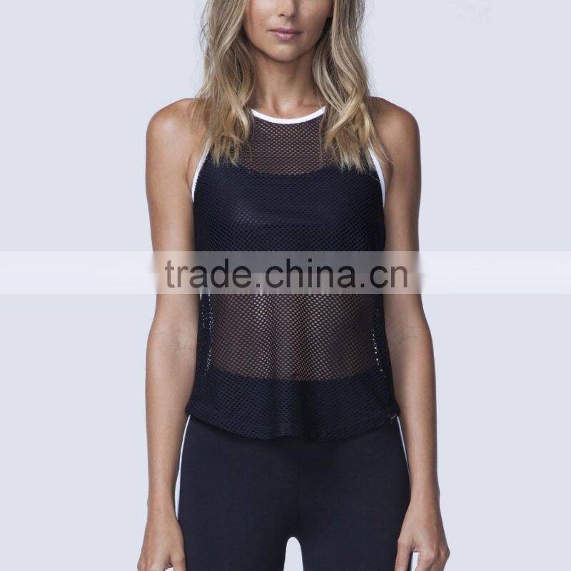 2017 New Arrival Custom Logo Blank High Quality Women Crop Top Wholesale Mesh Top Shirts