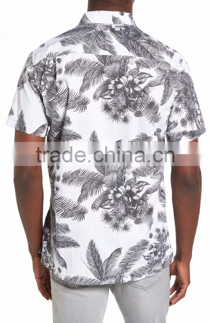 Men's Latest Cotton Gym Shirt Designed in Tropical-vibe With Short Sleeves