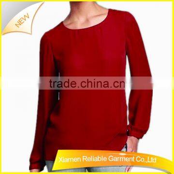 Red hotsale round neckline chiffon shirt with long sleeve