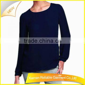 Navy round neckline long sleeve Pure chiffon online selling shirt
