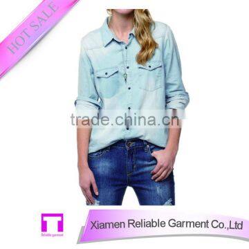Ladies Denim Blouse With Pockets High Quality China