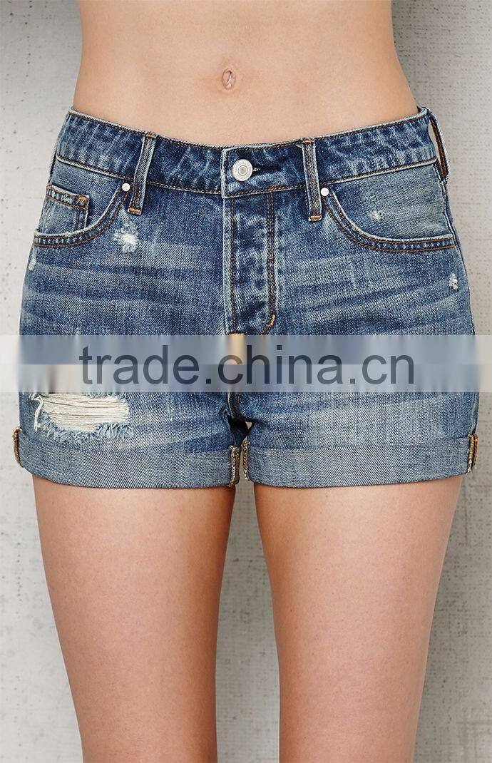 Blue Ripped Cuffed Denim Custom Sports Shorts for Women
