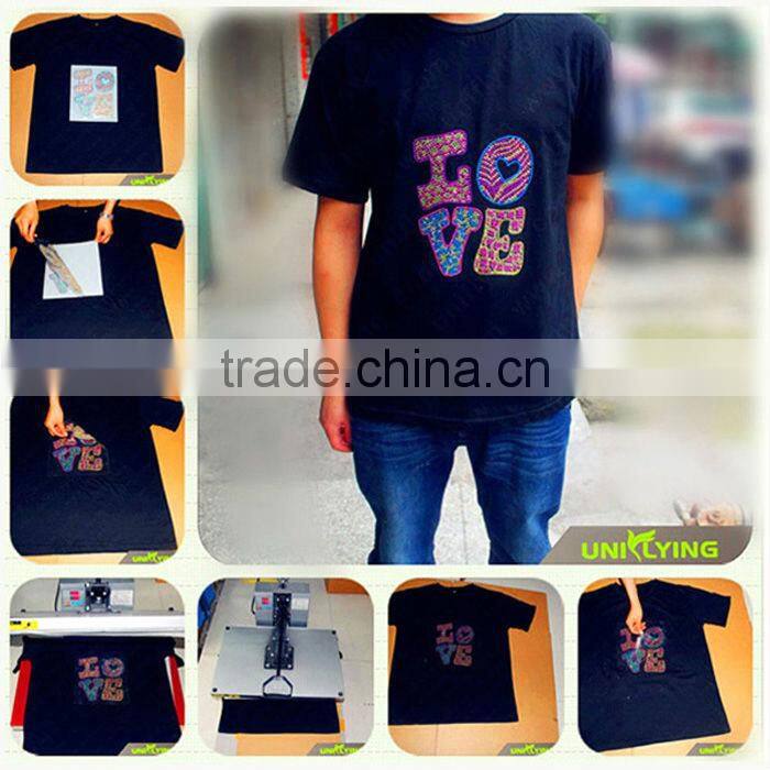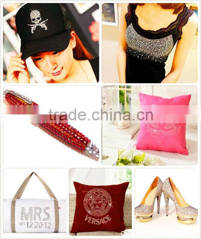 As a professional rhinestone heat transfer manufacturer in China,we're in this line for over 10 years,we use the latest technology to turn your logo,image or lettering into a stunning custom rhinestone transfer.Then apply the rhinestone transfer to the t-shirts you prefer,if u need to know more about us,please view our website : .contact us directly if u have interest in any of our products,we will really appreciated that and try our best effort to offer u the best service.