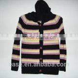 Hoody With Stripe Knit Kids Sweater Cardigan