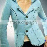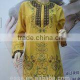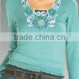 Women T-shirt Collar Long Sleeve Cotton Blouse With Embroidery Design