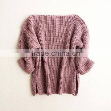 Wholesale 2017 New Fashion Spring Autumn Girls Slash neck Knitting Solid gray brown pure Sweaters