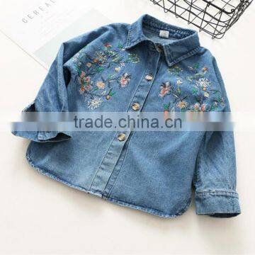 2-7 Years 2017 Wholesale Girls Denim Shirt Fashion Autumn Fashion Embroidery Girl Blouse