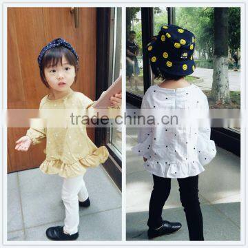 1-6 Years Wholesale 2017 Autumn Cotton Full Sleeves Dot Lotus Leaf Girls Blouses (pick Size Color)