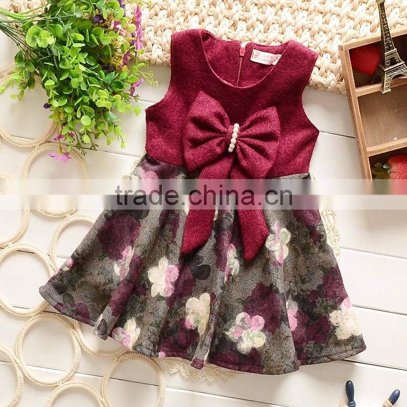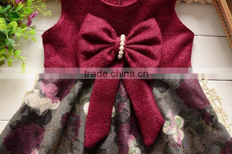 New Arrival Unique Baby Girl Names Images Children Girl Wool Dress With Beautiful Bowknot